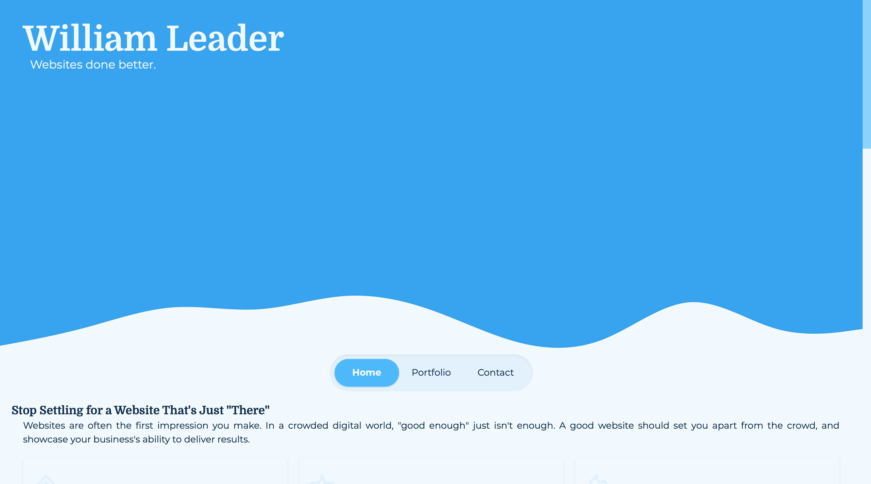 I can wholeheartedly endorse William Leader if you are looking to develop a web site. He very quickly grasped what we were looking to achieve with our site, which was an initial static site followed by a second stage full access database driven facility. He made numerous suggestions regarding functionality and security as well as platform suggestions to ensure the second stage would function properly.